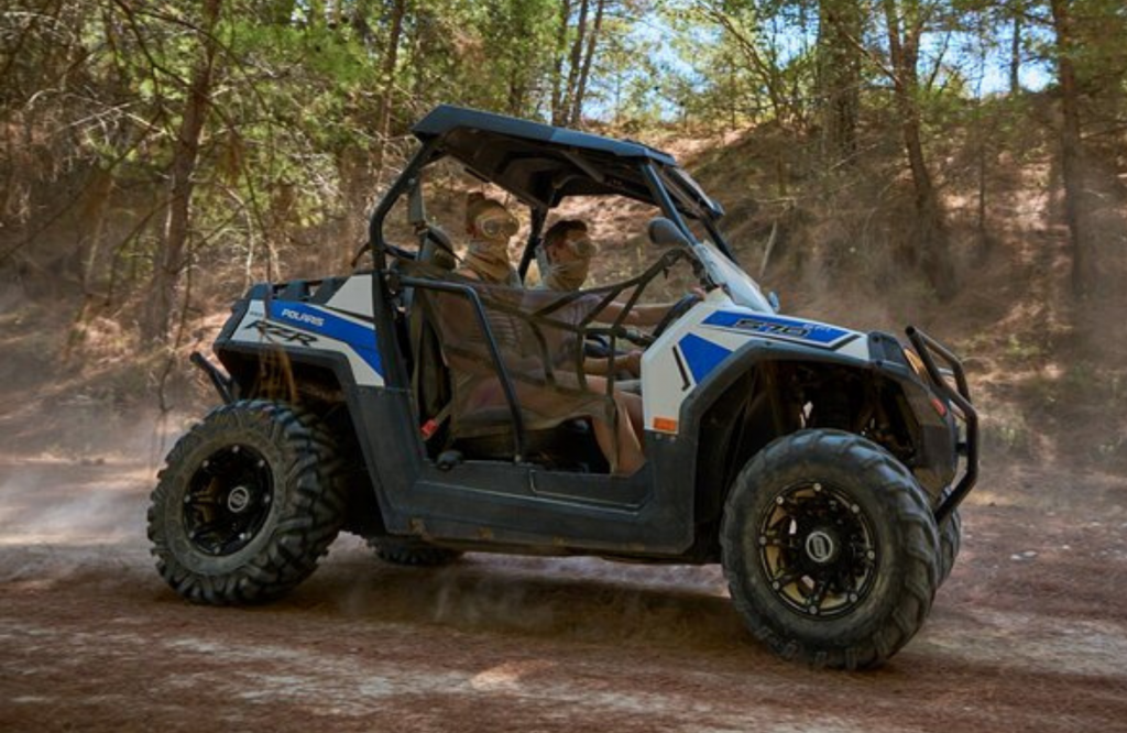 4x4 Buggy Adventure! Rhodes Adventures is the only supplier on the island of Rhodes offering the unique and completely original "Polaris Experience" as a tour. Consisting of a playful off-road experience within the beautiful Rhodian hidden tracks, this tour optimizes the amazing viewpoints on the island and is complimented with a tasting stop. The duration of the tour is 3 hours and runs during the day or in the afternoon where you get the chance to enjoy the breathtaking sunset of Rhodes. To be eligible to drive, our guests need to have their driving license and be a minimum of 18 years of age. Drive your own Polaris Buggy Rhodes off the beaten tracks! Vacation time is an opportunity for activities and exploration. Rhodes Adventures’ 4x4 Buggy Adventure provides the ultimate off-road trip with our Polaris RZR 570. The Buggy Adventure is a playful off-road trip with beautiful nature, amazing views and a tasting stop. We use the Polaris RZR - 570cc, a great off-road vehicle for 2 persons.