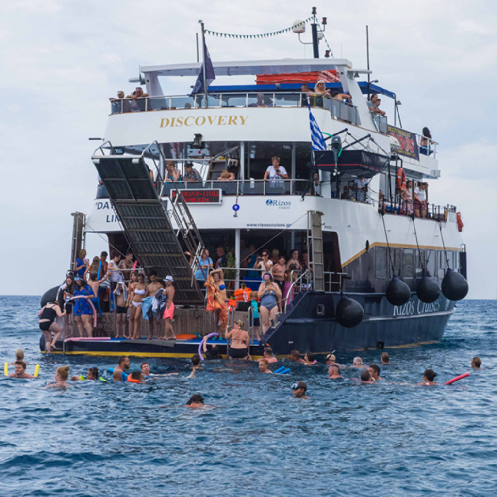 Our ship sails to Lindos every day and the trip's duration is about 2 hours. In Lindos, you will have 3 hours of free time to discover one of the most beautiful places in Greece. The boat departs at 14:00 towards the "Blue Lagoon" of Tsambika Beach for 30 minutes of swimming and snorkelling. The last stop is the majestic Anthony Quinn Bay, which was the impressive natural setting for the movie "the guns of navarone". During our 30-minute stop, you will discover one of the most amazing seabeds of the Mediterranean sea, with colorful fish swimming among corals and seaweed.
