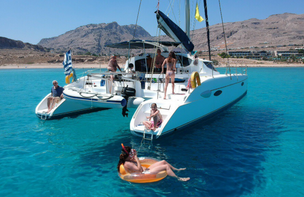 The Lagoon 440 is the ideal platform for holidays on the sea. Combines the modernity, Luxury style and comfort in terms of accommodation deck areas facilities, but also its performance. Board the 'Lagoon 440', the luxurious Sailing Catamaran “Wind” that will take you on this cruise. The first stop on your 6-hour cruise is the Anthony Quinn Bay. Enjoy the amazing views, swim and snorkel for half hour. Next, the catamaran will sail to the Afandou Beach, the second stop, where you’ll have 60 minutes to swim and snorkel in a quiet beach. Enjoy a lunch of Mediterranean dishes, prepared and served on board. The last stop will be at Kallithea Springs for a 30 minutes swimming and snorkeling. Lunch and drinks are included in your cruise, go ahead and enjoy. Throughout your cruise, you will taste homemade Mediterranean cuisine, fresh fruits and Greek wine prepared with care by the crew. Duration: 6 hours
